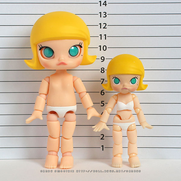 팝마트 몰리 BJD 와 큐포쉬 바디의 비교 사진입니다.