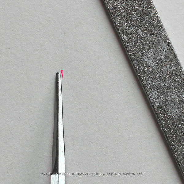 줄칼로 아주 살짝 갈아준 부분.