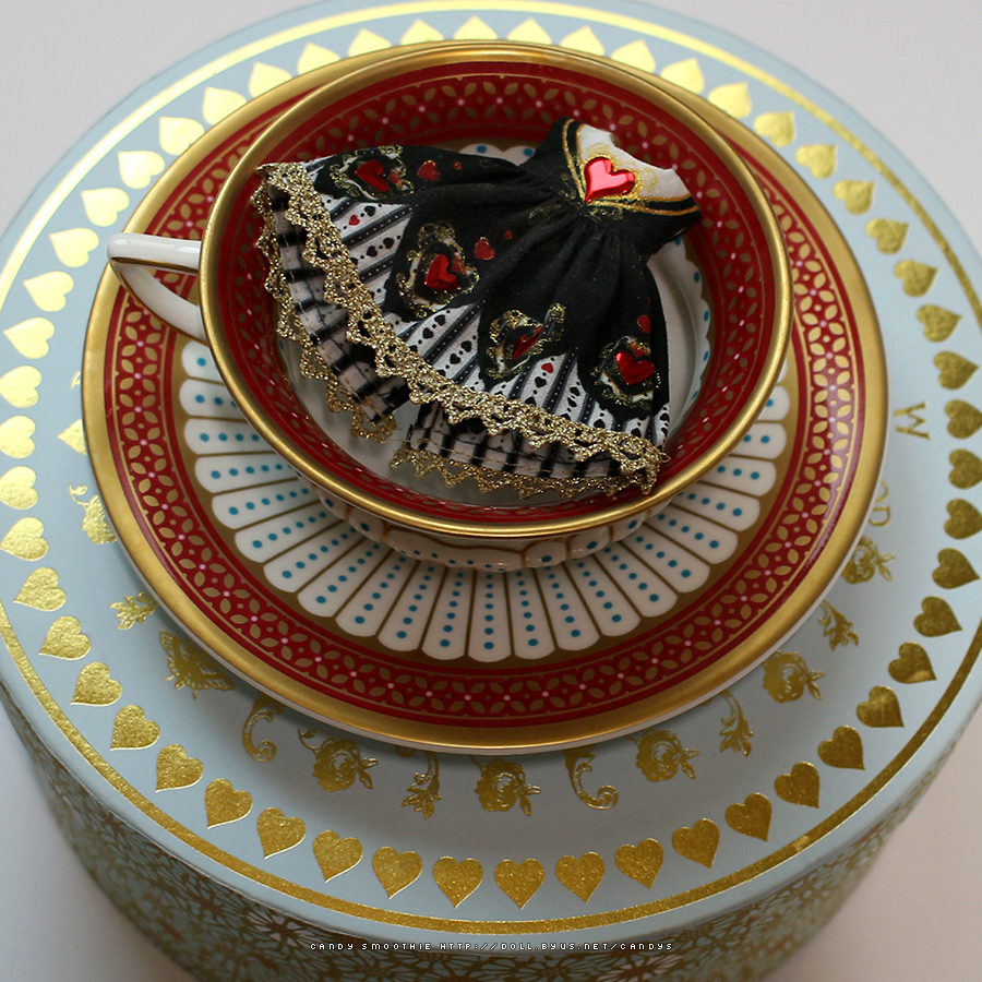 그러고 나니 원단 뽑는 김에 검은 바탕에 자잘한 일러스트가 들어가 있어 매번 검은색이 번져 탐탁지 않던 하트여왕 드레스 ver2를 만들어 볼까? 하는 곳으로 생각이 흐릅니다.