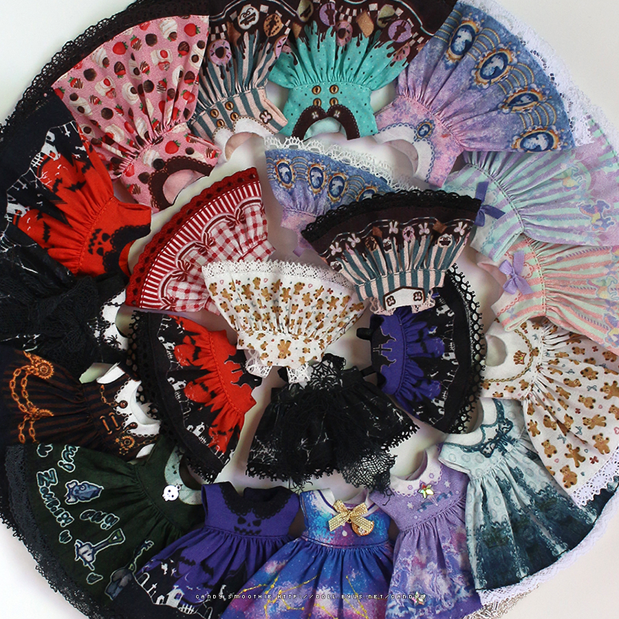 작은 아이들용 프린트 드레스들을 준비하고 있습니다.