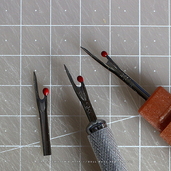 기존에 사용하던 실뜯개가 이 제품으로 날이 얇아서 1/12 인형옷의 촘촘한 땀을 따기 적당했지만 한 가지 단점이 저 칭칭 두른 마스킹테이프만 봐도 알 수 있듯이 사용하면서 뚜껑에 점점 금이 간다는 점이었습니다.