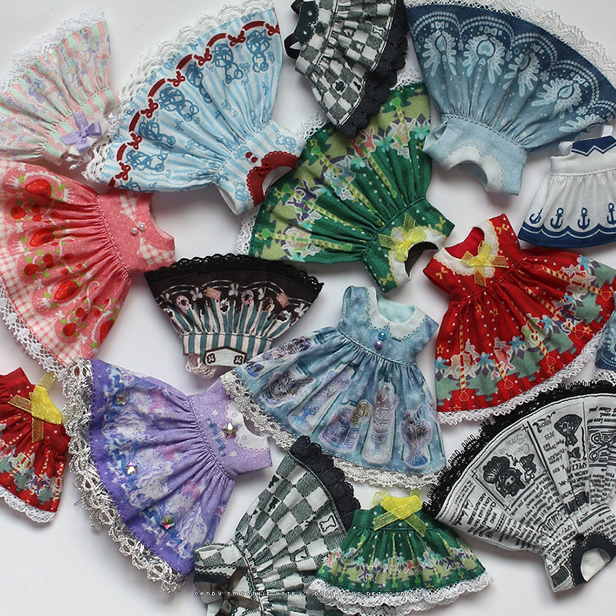작은 아이들용 프린트 드레스들을 준비하고 있습니다.