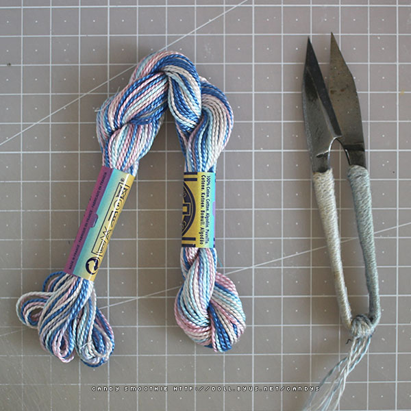 좀 예쁘게 꾸며보고 싶어서 부자재함을 뒤져서 나온 멀티컬러 자수실을 쓰기로 했습니다.
