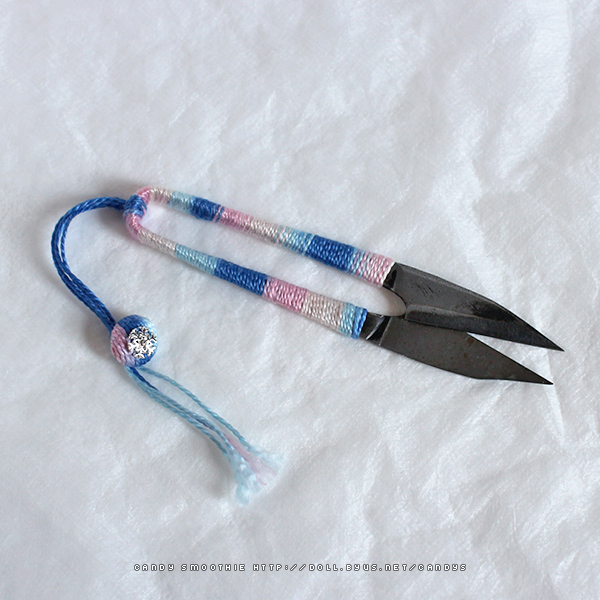 이렇게 만든 단추를 실 끝에 묶어주면 깔끔하고 이쁜 쪽가위 완성!