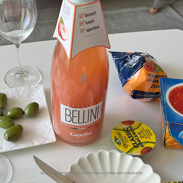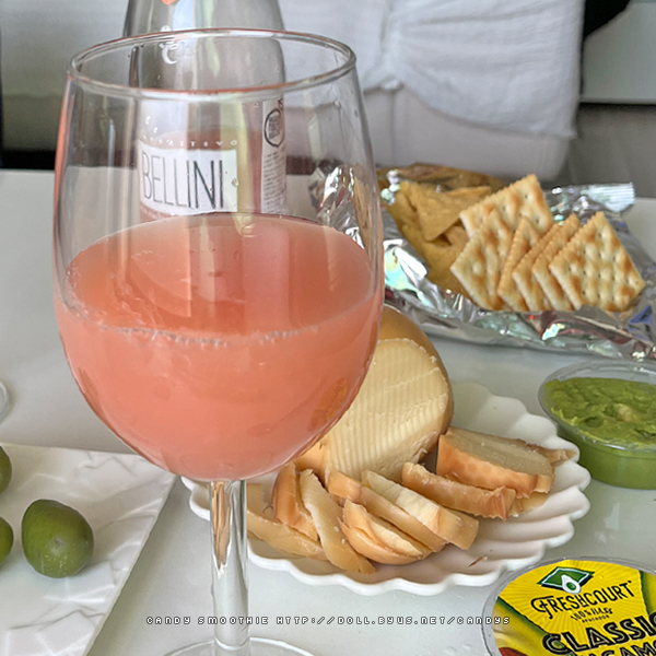 복숭아 과육이 넘실거리는 칵테일와인 카넬라 벨리니.
